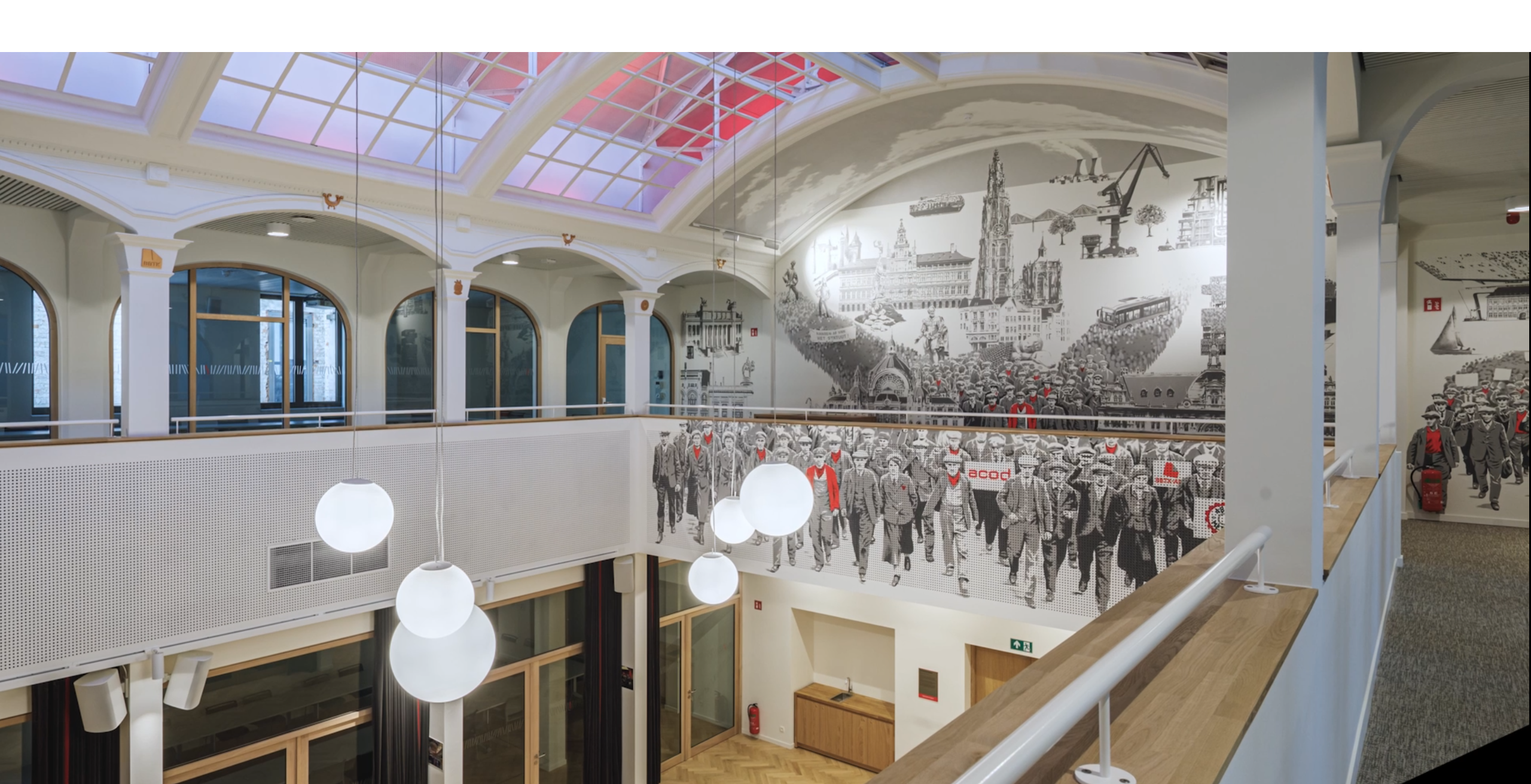 'A' Bondsgebouw Omvorming en renovatie van een feestzaal tot kantorencomplex met maximaal behoud van de bestaande structuur Slideshow DOWNLOAD ALS PDF Bouwheer ABVV Architect Tao architectuur Oppervlakte 4.265 m² Bouwkost 9.100.000 (excl. BTW & Erelonen) Contact ABVV antwerpen Ligging Ommeganckstraat 35, 2000 Antwerpen Status Opgeleverd Categorie Kantoren